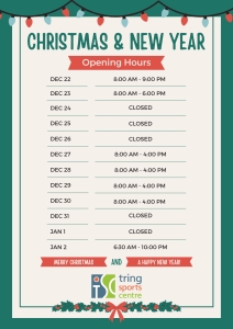 Here’s everything you need to know for the festive season at Tring Sports Centre!