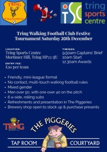Tring Walking Football Club are hosting a festive tournament on our astro turf on Saturday 20th December.